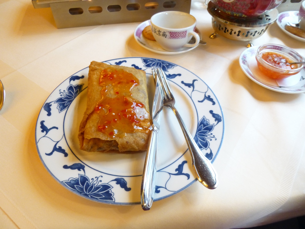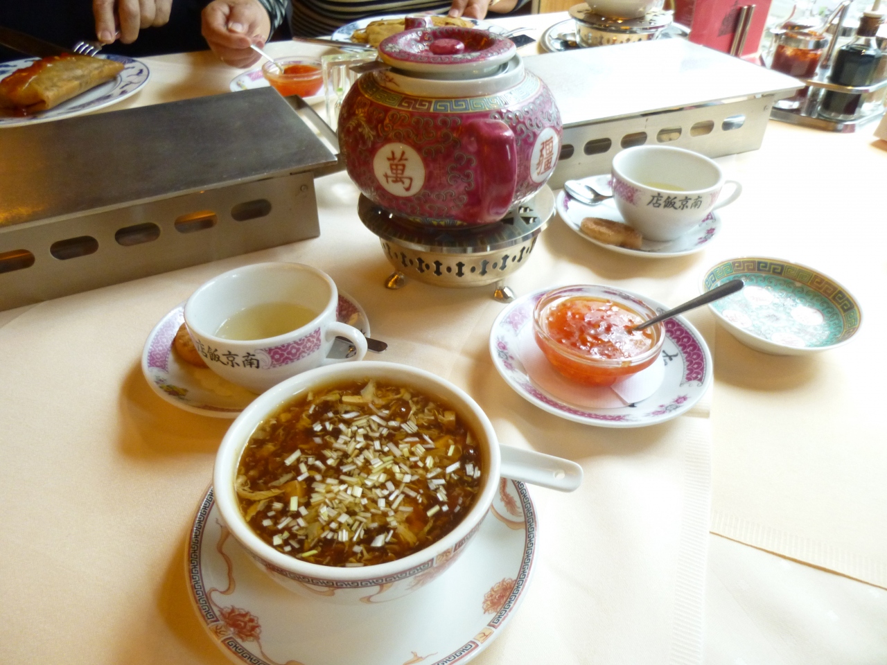 ジャスミン茶、北京スープ、大きな春巻