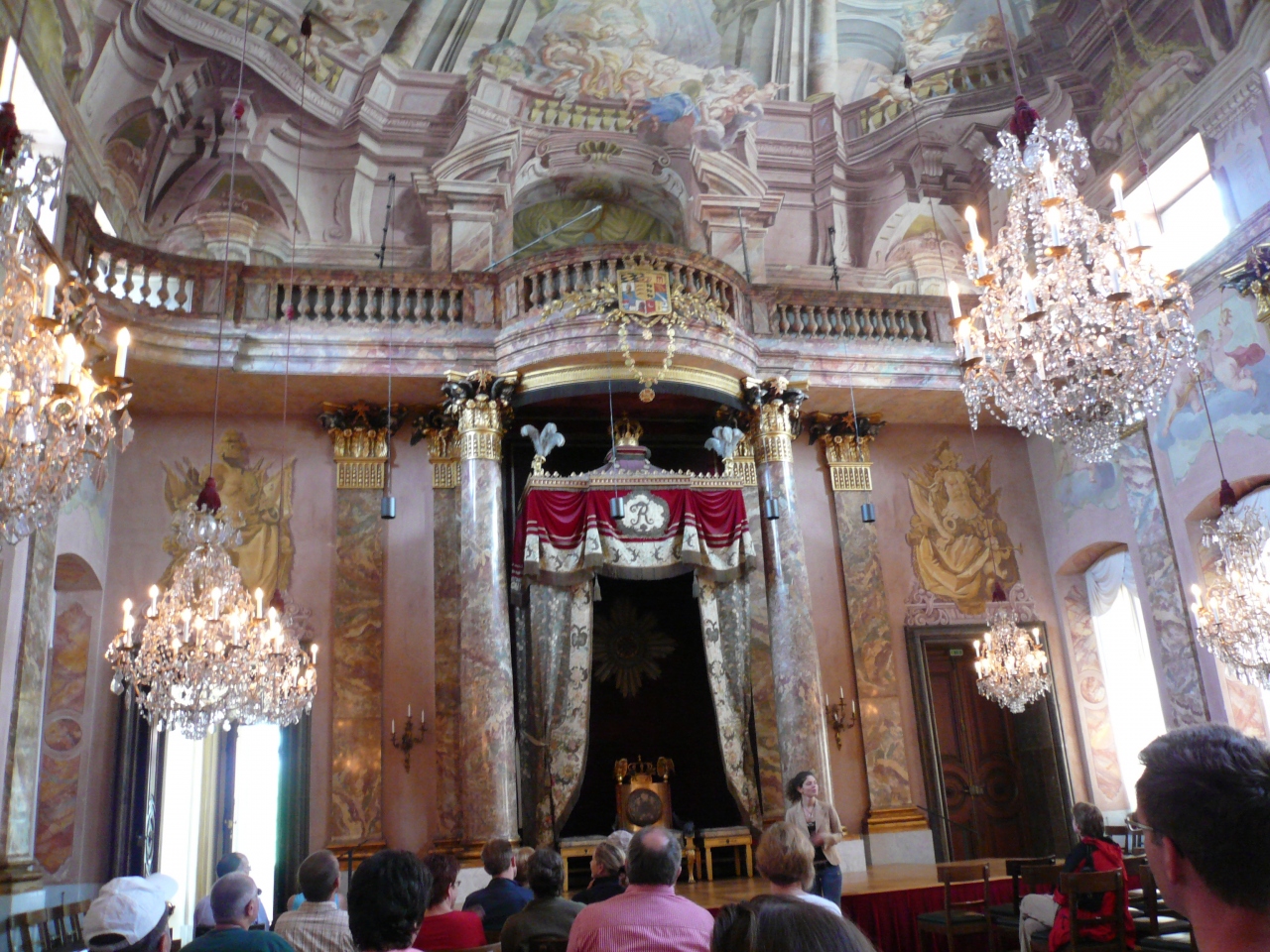城の博物館観光はまず、大変見るところが多い王宮Residenz Schloss からスタートする。若いが説明の上手い女性ガイドさんが120分もの長い案内を務める。“シュヴァーベンのベルサイユ”とも称される夏の離宮は1704-33にかけて、StuttgartのHerzog Eberhard Ludwigヴュルテンブルグ大公が建てたものであり、18の建物、452の部屋があると言う。既に300年の歴史をもつ宮殿は規模からすると、ベルサイユ宮殿をはるかに超えると云う。