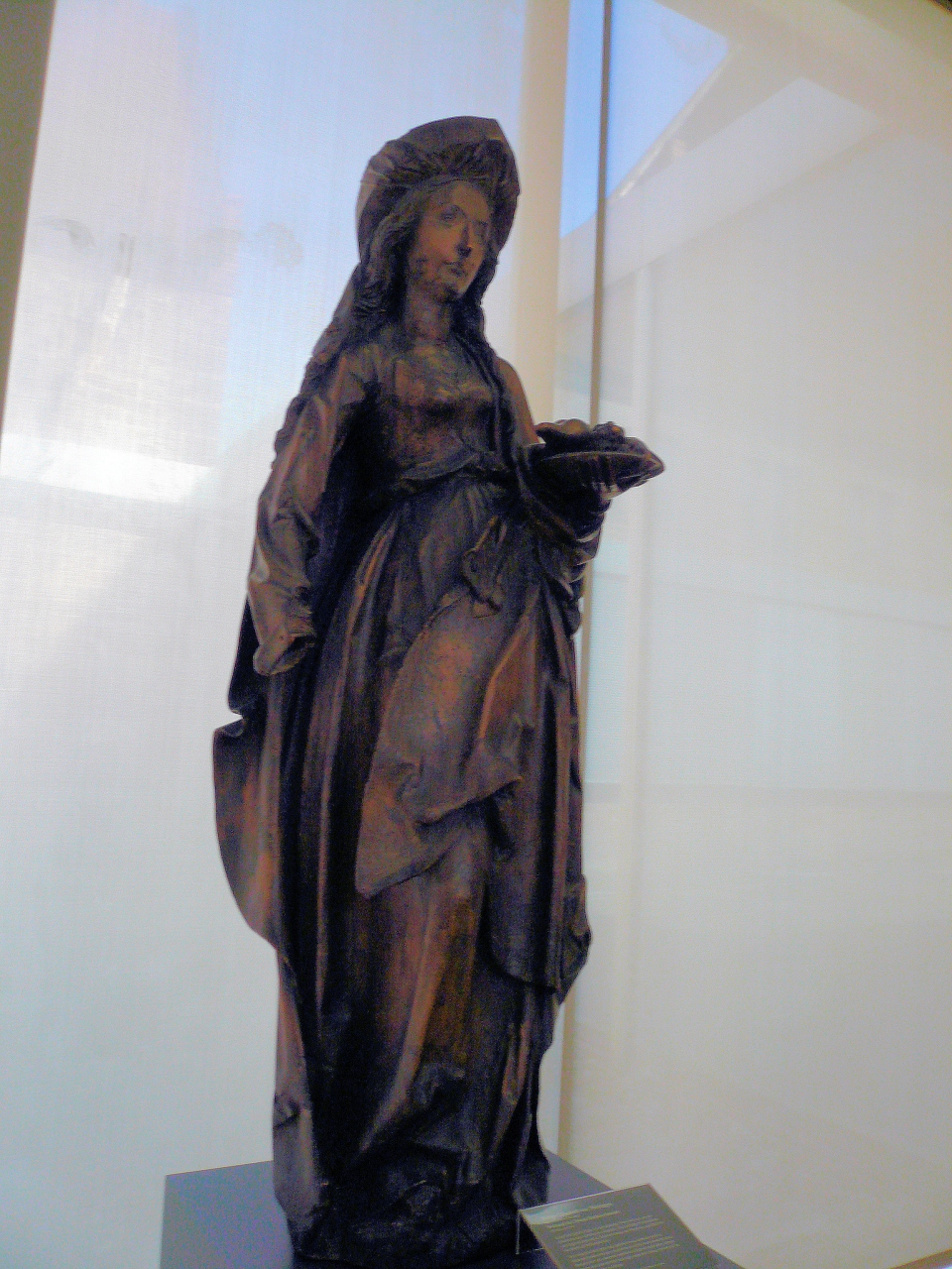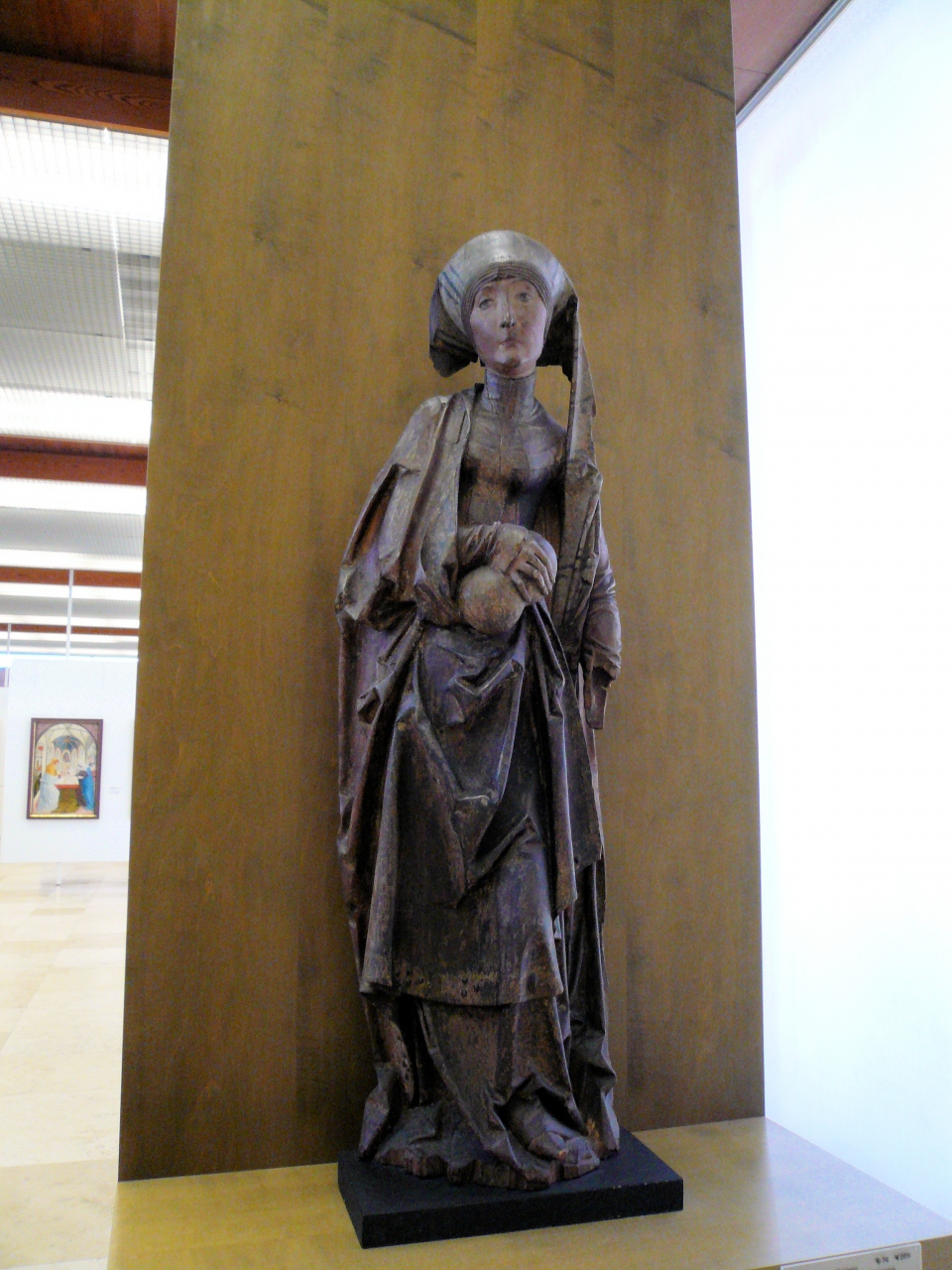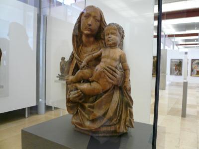 次のTilman Riemenschneiderティルマン・リーメンシュナイダー作品;Hl. Elisabeth聖女エリザベートの立像(1510年頃の作品。チューリンゲンにあったもの。・・・各地にみる聖女エリザベートとはまた一味違った木像)、Muttergottes聖母子像、Beweinung Christ悲しむキリスト(1505~8年頃の作品。これと対をなす悲しむ女性の像がStuttgartにある。)など、Wuerzburgのマリエン要塞の博物館には負けるが、なかなかの作品群である。