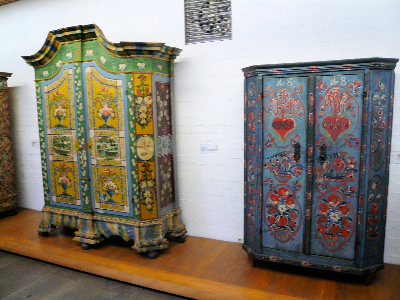 民族・郷土品の展示では、荘重な家具類、バイエルン風な色彩豊かなSchrank戸棚、祭に使用したユニークな仮面、馬上試合に出場する見事な騎士の甲冑・馬上姿などなど・・・興味深いものが多かったが、旅行者には時間がなくて、とても全てを見きれない。