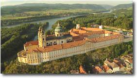 中庭には笛を吹く銅像が立ち、階上のテラスレストランは広い。Museumbruecke博物館橋から見る聖霊院はAmbergの眼鏡橋の様だ。