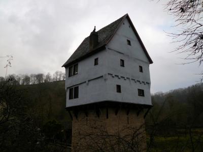 この公園内も大勢の観光客が回遊していたが、タウバー川の清流にかかるDoppelbruecke二重橋(14世紀)や教会、村落の景観など城塞都市の違った風景も見え、Topplerschlosschenトップラー別荘(1388年実力者トップラー市長の別邸)と称される奇妙な建物も、城塞公園のテラスから見下ろせた。