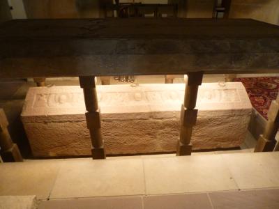 その石棺は当時の質素なままで、石棺の蓋には“炎の中の9人の天使”が彫刻されているそうですが、地下の暗闇の中で照明が光って良く見えなかった。