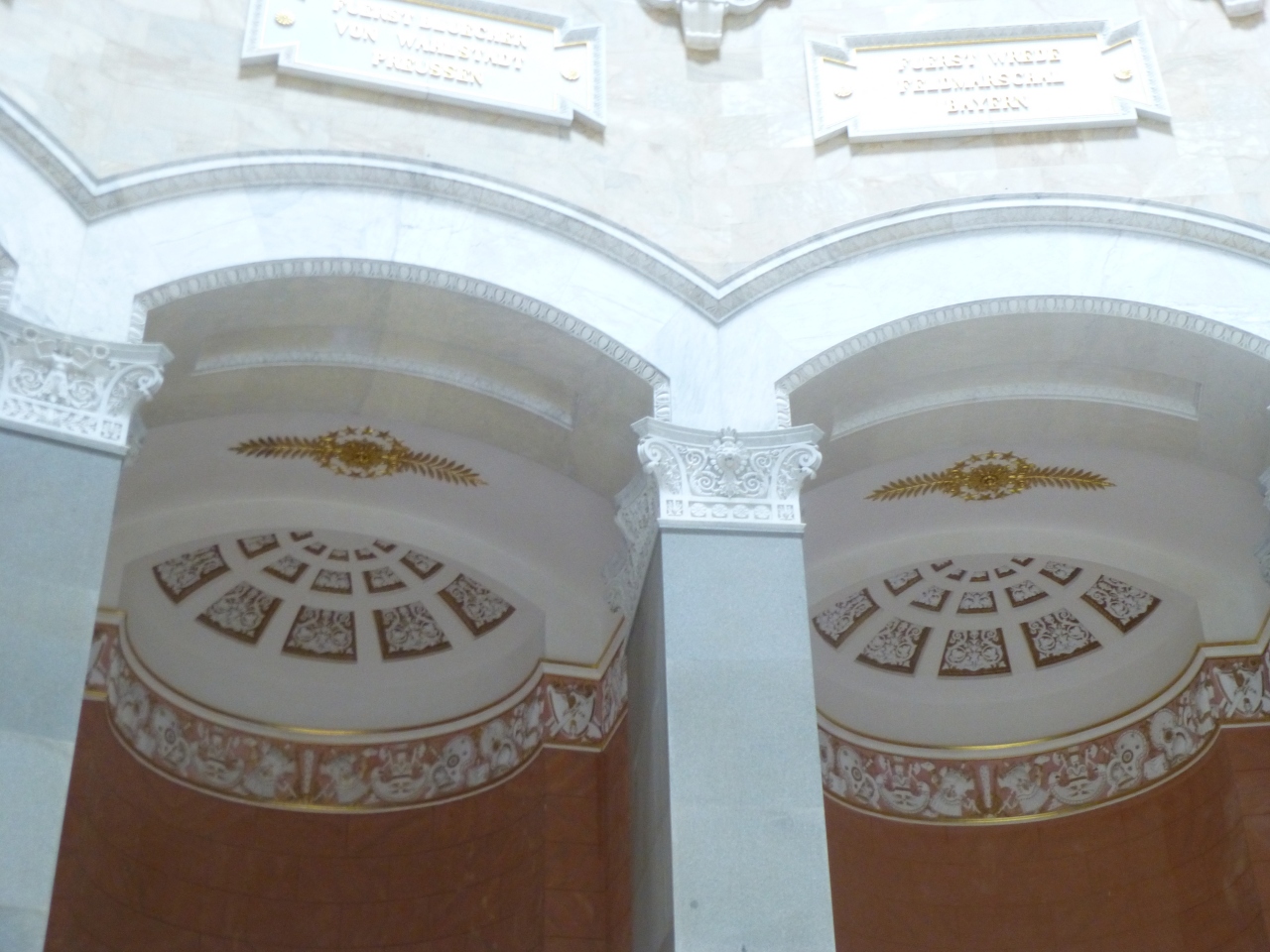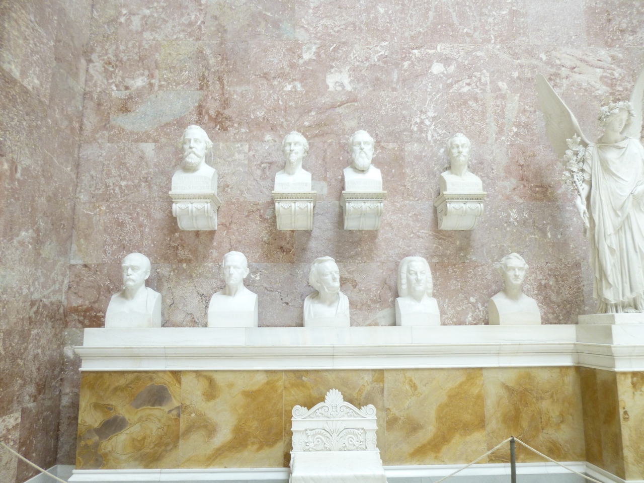 125X50mという長方形の神殿大広間の中央奥にはヴァルハラ神殿の建設者のバイエルン王ルートヴィヒ1世の大理石の坐像が鎮座している。