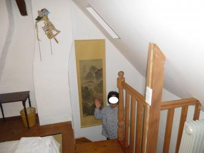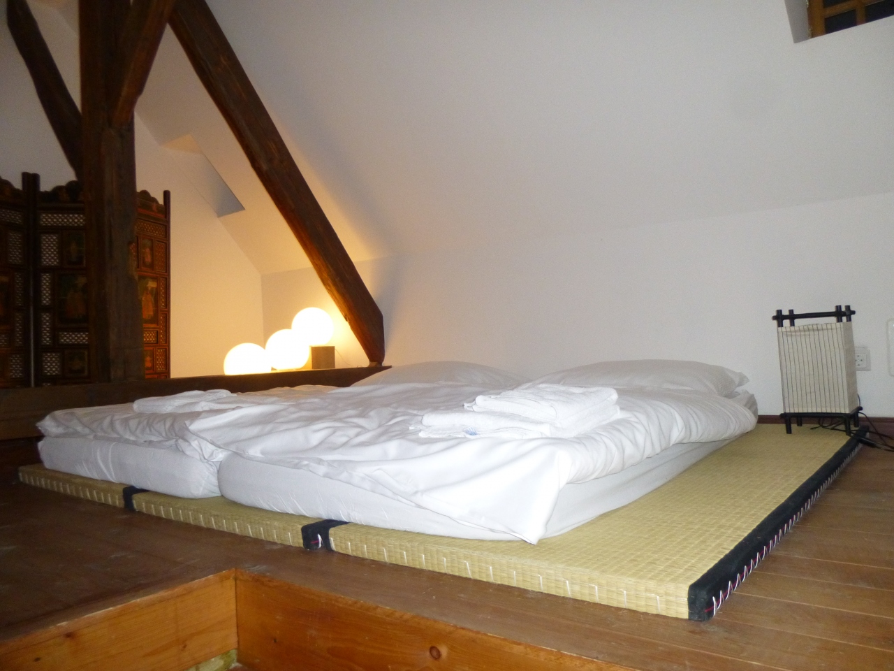 面白い事に2階の部屋には浴室やベッドが置かれ、階上への螺旋階段を登ると、3階に畳の敷かれたアジア風の寝室があった。所が、これが沈んでしまう様なベッドで、結局、2階で就寝することにした。オーナー夫婦ともに背が高い所為か、シャワー設備、鏡、トイレの便器、衣類架け等すべてが高過ぎた。(多分オランダに近い地域故、皆さん背が高い)