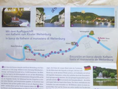 観光船はドナウ船着場からケールハイム とベルテンブルガー僧院間のドナウ川を往復する就航である。流れを上流にさかのぼる往きの時間は45分、帰りは下りで逆に早いから半分の20分である。片道料金はEuro6.5、往復Euro 11.5X2=23と少し値上がりした。