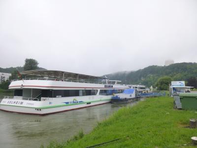 ケールハイム・ドナウ観光船は予定の便9:30の船「Kelheimケールハイム号」が準備万端で待っていた。なんだかんだと、もう3回目の乗船だが、昨日“天の啓示”という吉兆にも拘らず、残念ながら今は小雨模様で霧もかかり、高台のベフライウングスハレ解放記念堂もかすんで見える。駐車時間(行ってすぐ帰る往復時間)をチケット売り場で聞くと、2時間でOKという(駐車料金は9:17~11:17の2時間でEuro1.25と安い)。