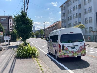 車両は大きめのワゴン車で、座席は普通のバスよりずっと良い、リクライニングするし。ただし、車内は狭い。
