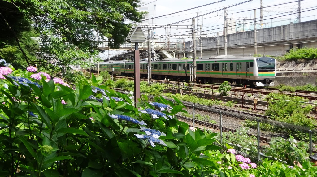 なので、乗るよりも、線路沿いの道を歩き回って撮った方が楽しい路線である。六月限定だが。どこが見ごろかは、京王などのサイトで随時紹介されている。