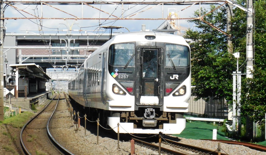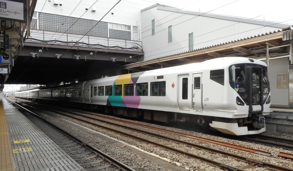 全列車9両編成以上で運転される。車両は2002年以来、E257系が使用されてきたが、今年7月から、12往復中9往復に、新型の車体傾斜式車両、E353系が導入された。スピードアップとかはまだ行われていないが、数年内には全車新型になるので、そのさいに高速化すると思う。E257系自体、先代の183系に比べると高性能で急加速急制動を繰り返す鋭い走りをしてきたが、さらに磨きがかかるだろう。