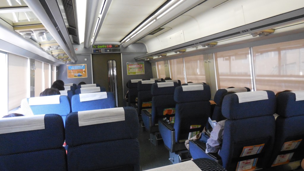 乗車してみると、仕切りにアクリルガラスを多用しているため、車内が明るく広く感じる。ドア上の案内表示も大画面な液晶ディスプレイになっていて見やすい。JRの振り子特急と同じ自己操舵台車をはいていてカーブをスムーズに曲がるとのことだが、自分には違いが体感できなかった。