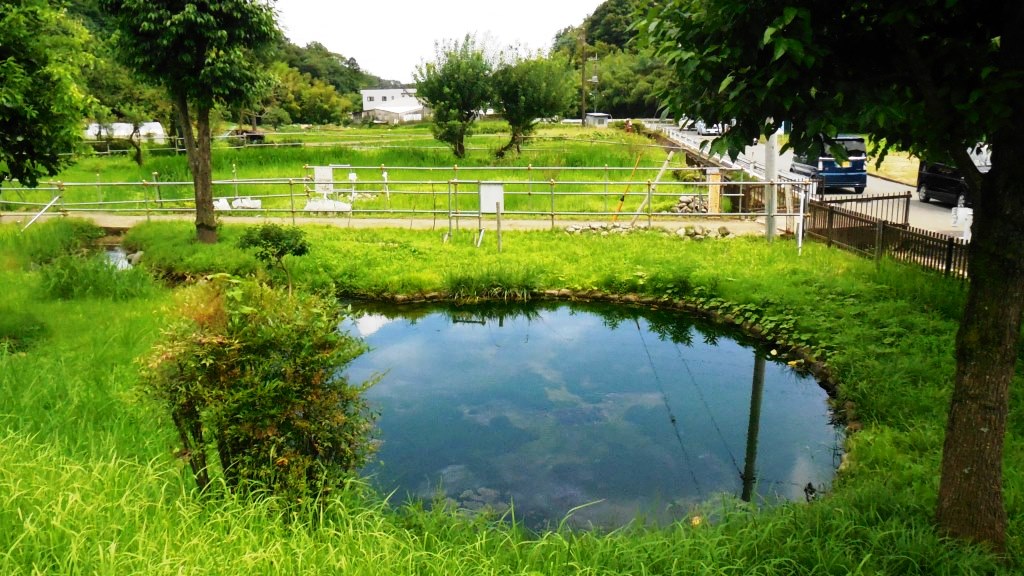 鶴見川は、完全に道沿いの溝という感じで流れ、とても一級河川とは思えない。バス停から10分ほど北西に歩くと、噂の「鶴見川源流」はあった。「鶴見川源流泉のひろば」という看板の書かれた、公園と池に整備されている。水はもはや清流で小魚も泳ぐ。