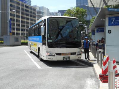 THEアクセス成田は、JRバスも参入しているので、グランルーフから出発。オレンジ色のリムジンバスが、ずっと北側の鉄鋼アベニュービルから出るのに比べると、安いだけでなく便利だ。