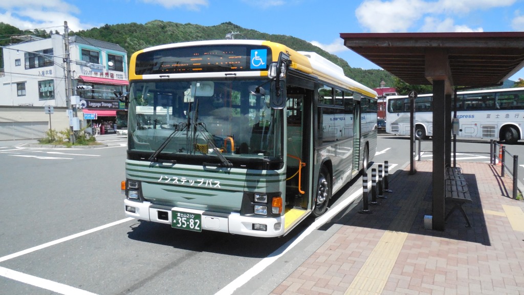 観光客少数、メインは地元の生活路線という感じだが、甲府盆地の南斜面の果樹園をみながら国道137号線を走破し、御坂峠を長いトンネルで抜け、その先の参観が開けると、河口湖が広がる、という、ダイナミックに景色の変わる路線だ。
