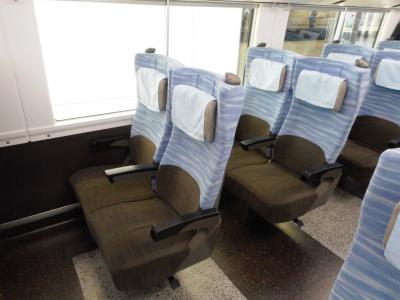 車両は全列車、展望席のないMSE車。座席はEXEに比べると質素でモバイルコンセントとかもついてない。車内販売も来なかった。このあたりが、人気がいまいちの理由かも。