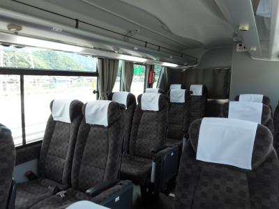 乗車したバスは古めの路線バスだったが、座席はハイバックシートで席数そのものも多い観光向け。