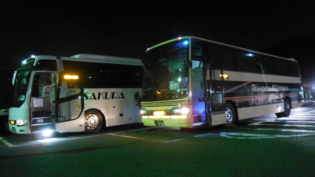 トイレはあるが(掘り込み式)、車内は身動きとりずらいので、途中トイレ休憩の時に行った方が良いと思う。佐野サービスエリアで15分くらいの休憩があった。- 旅行時期
