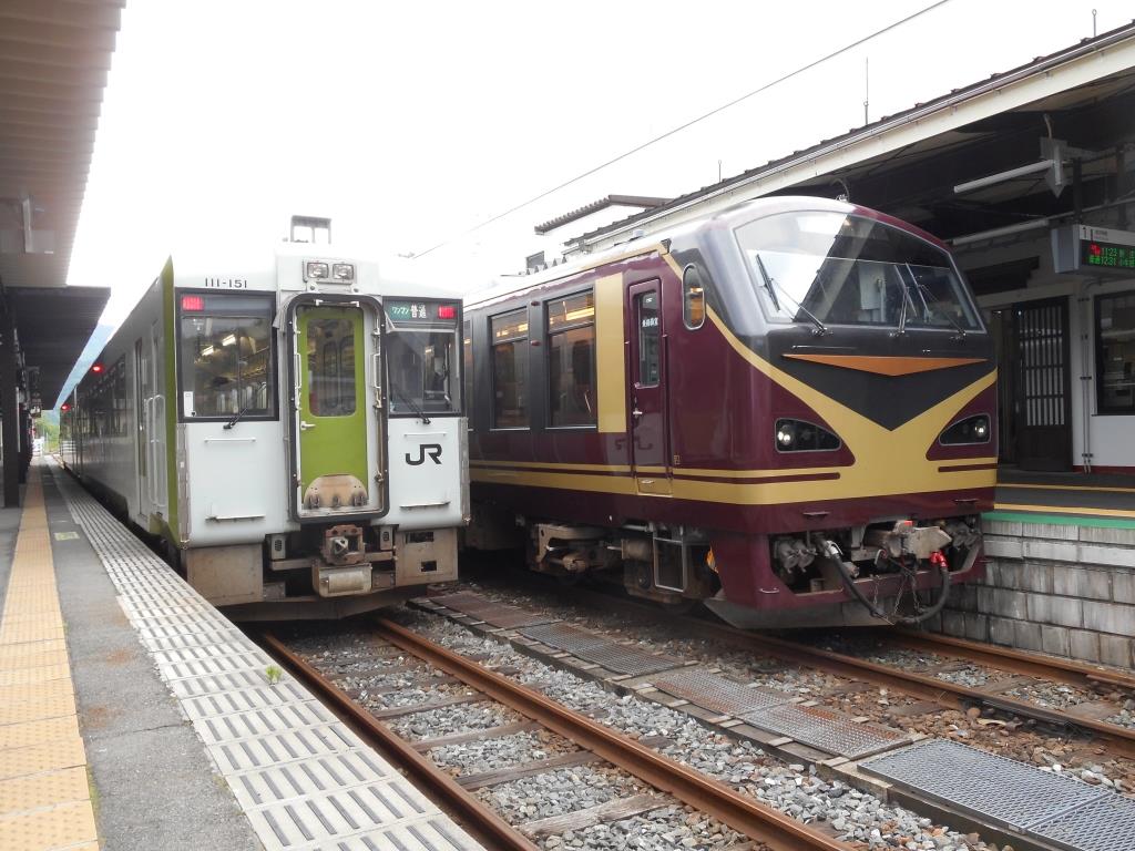 ほとんどの列車が、鳴子止まりで、乗り換える必要がある。週末に運転される「リゾートみのり」に乗車するのがおすすめ。