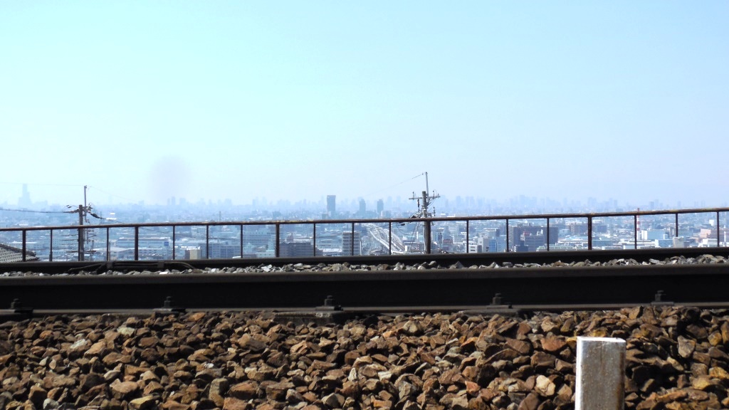 東大阪市内の枚岡-額田-石切の間。奈良へ向かう電車だと進行方向左手に、大阪平野が一望できる。