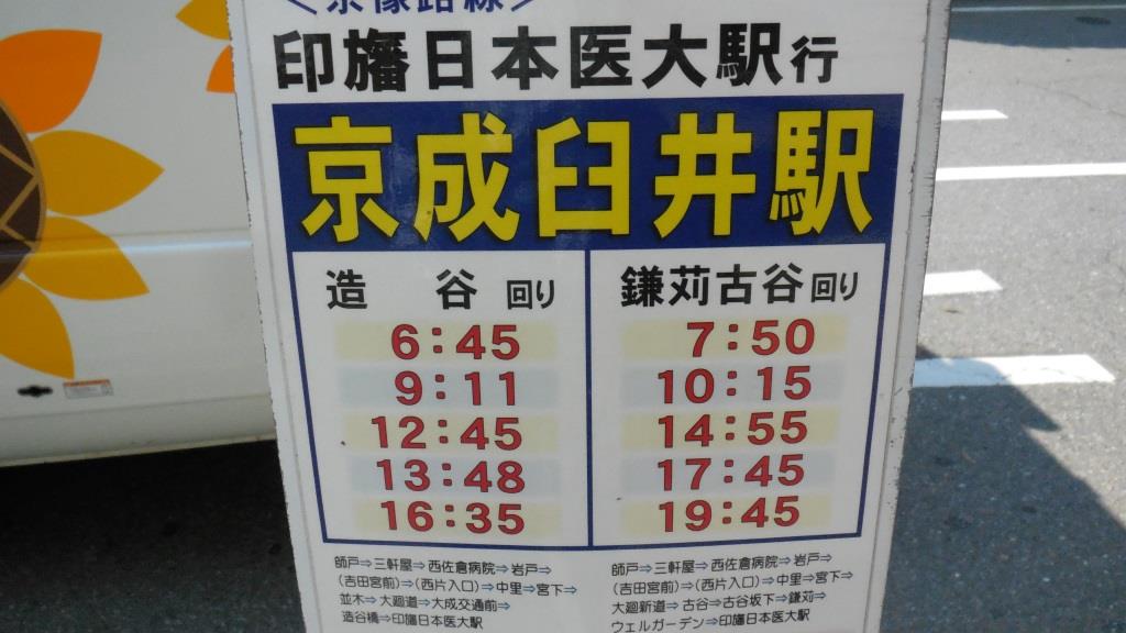 京成線の臼井駅と北総線日医大駅とを約30分で結んでくれる利用価値の高いバス。日医大の正面にも寄ってくれる。