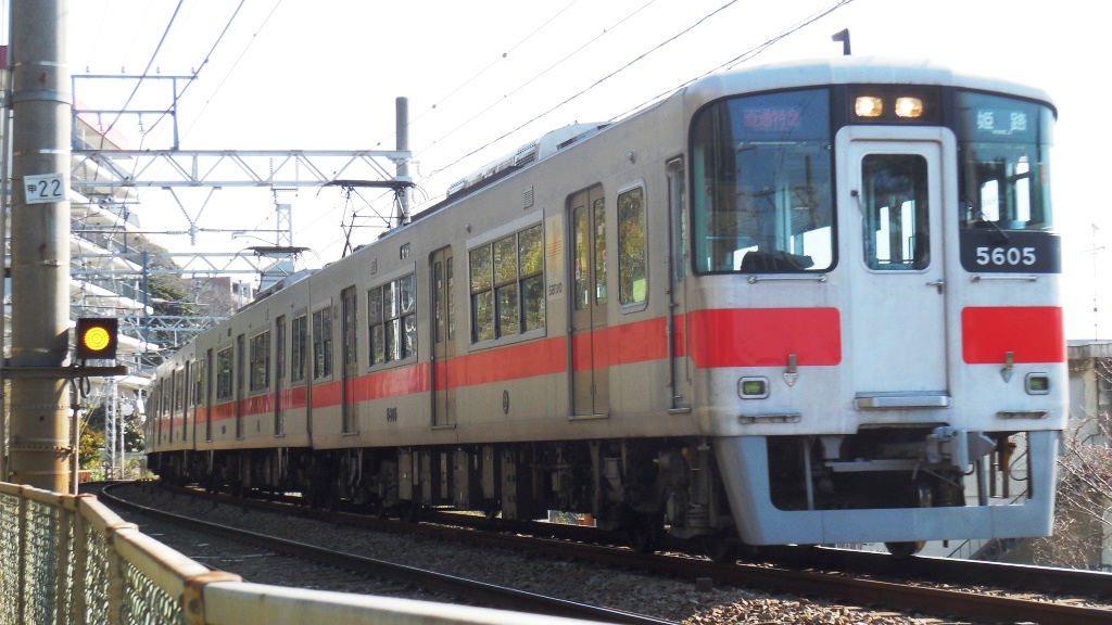 新快速と同じ15分間隔で、日中の山陽電鉄特急は全部これ。転換クロスシートの車両も存在し、6両編成中中間の2両から4両が転換シートの場合が多い。阪神もこの運行に備えて転換クロスシート車を新製したほど。上半身オレンジの阪神車、シルバーに赤帯の山陽車が半々で使われる。