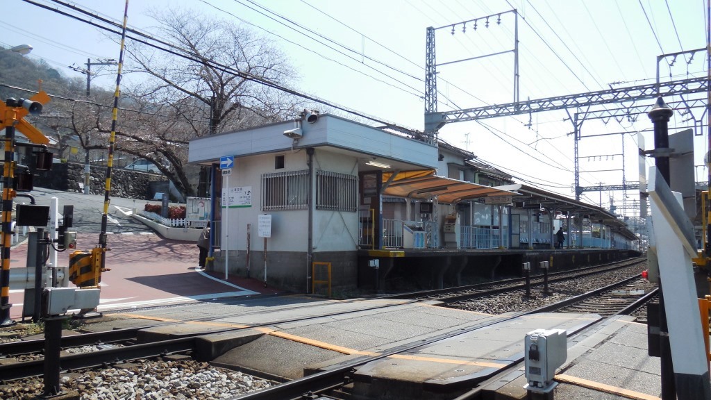 そのためホーム自体が坂になっている。大阪の私鉄ではこういう坂道駅はよく見かける。この駅から線路沿いにちょっと石切駅の方向に歩くと、西側に大阪平野が一望できる。昔、夜間にここを通ったことがあるが、夜景が実にきれいだ。
