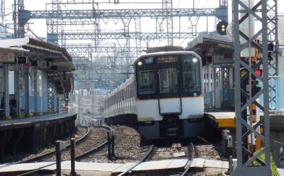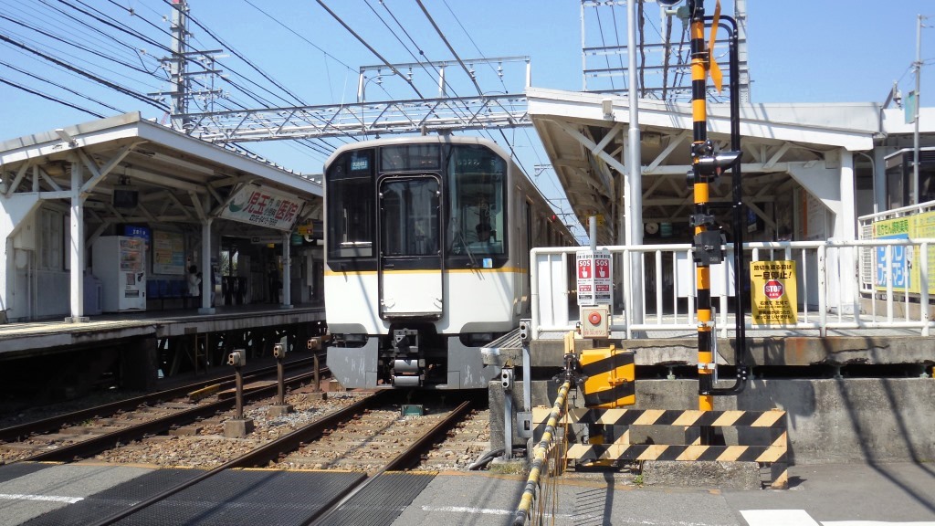 撮り鉄お立ち台が近い、大阪教育大駅(柏原市)、この駅は上本町から19km程度だが、日中に停車する電車は1時間当たり3本のみ(河内国分より先の急行通過駅はみな同じ)。1時間当たり4本走る特急がもうぜんと通過していくのを見送りつつ20分くらい電車を待つことに。