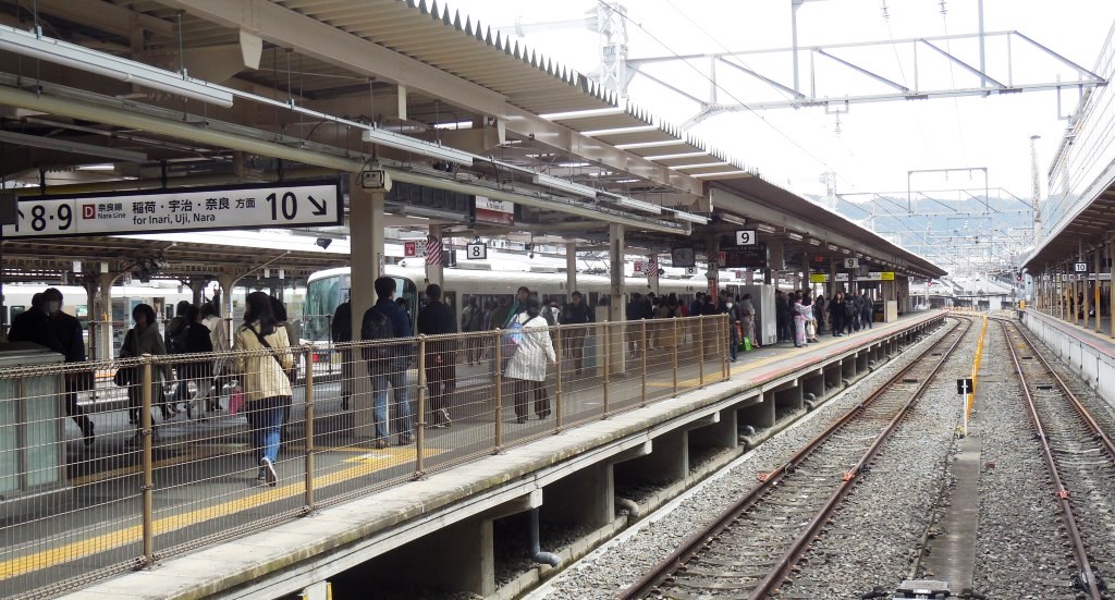- 快速も普通も混む。狭い京都駅はホームも混雑