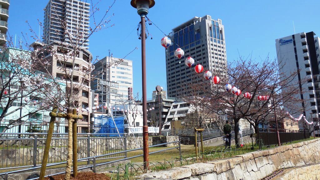 また、その付近には小さいが、桜の木がたくさん植えられている公園もあった。夜桜と大阪の夜景、夜に来ると綺麗だろうなあ。