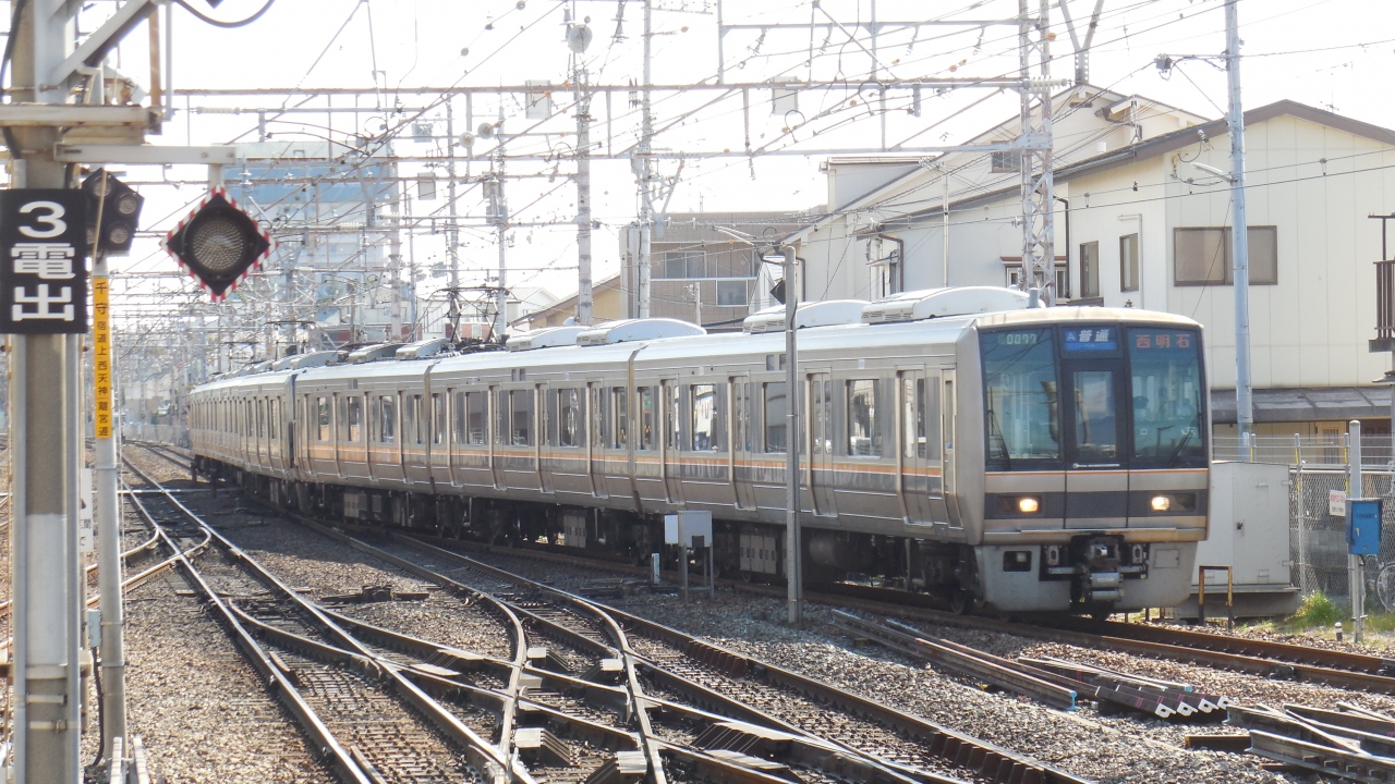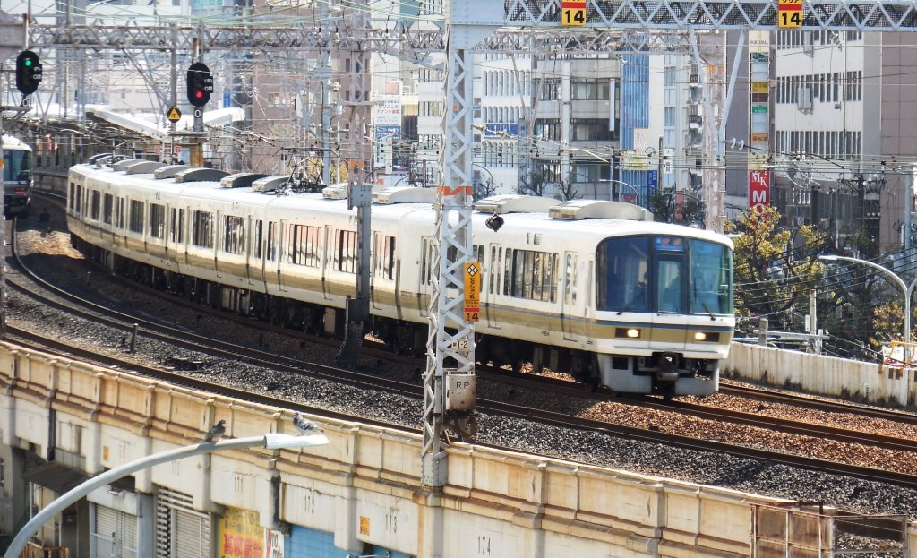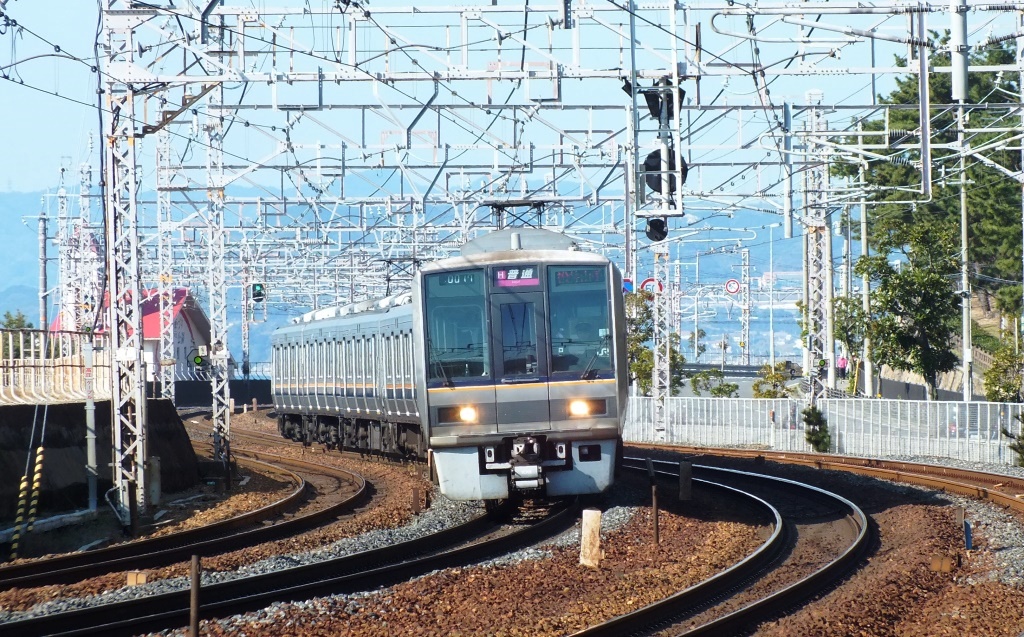 車両はやや古いが221系転換クロスシート車が快速と一部の普通に使われ、近鉄や京阪宇治線にはないサービスとなっている。旧式な103系の運転も依然多い。