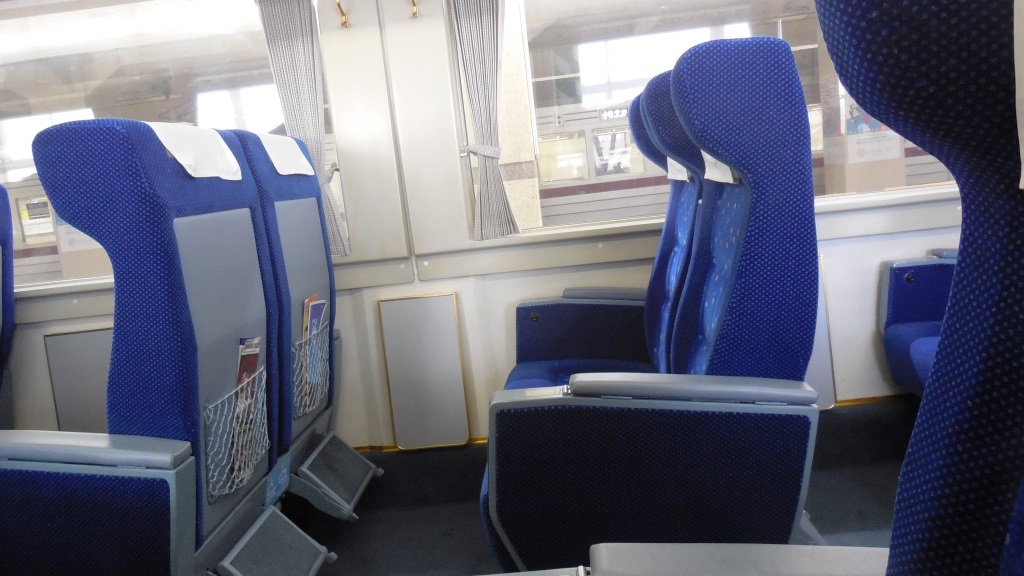 噂の特急リバティと比べると、リニューアルしたとはいえ車体の古さは感じる。しかし、座席などはこちらの方が良い。リバティより座席周りは広く、席そのものも大きめ、また、足載せがある。