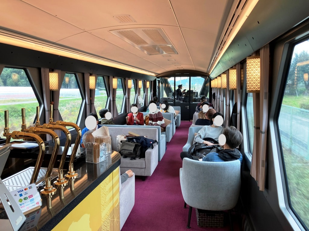 6両編成で座席の種類は4種類。一番安いスタンダートシートは3両、他は特別車両のプレミアムシートと、部屋売りの各種個室やコックピットラウンジと言う展望の良い銭湯客室、いずれも料金や購入方法が違い、複雑な料金体系は往年のJR九州787系を連想する。