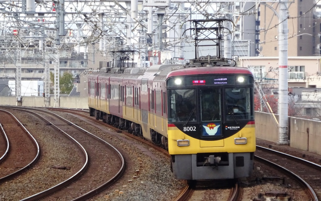 大阪淀屋橋と京都出町柳を大体1時間近くで結ぶ。15分間隔で運転しているが、紅葉などのシーズンが平日昼間でも、とにかく混雑する。