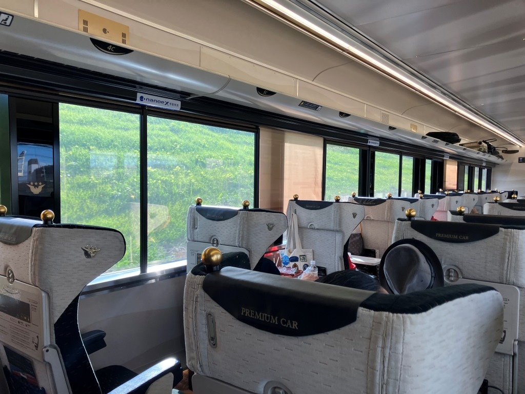 プレミアムシートカーという、3列座席のリクライニングシートを備えた車両が1両連結されているので、それを利用した方が良い。指定席、料金は500円、駅ホームに販売機があるほか、車内でも専務車掌が乗務し販売している。- 旅行時期