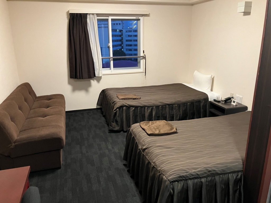 私が泊まった部屋は残念ながら2階で目の前がスシローのお店だった。コンビニも近くにあるが、ルートインは朝7時前からバイキングの朝食もある。- 旅行時期