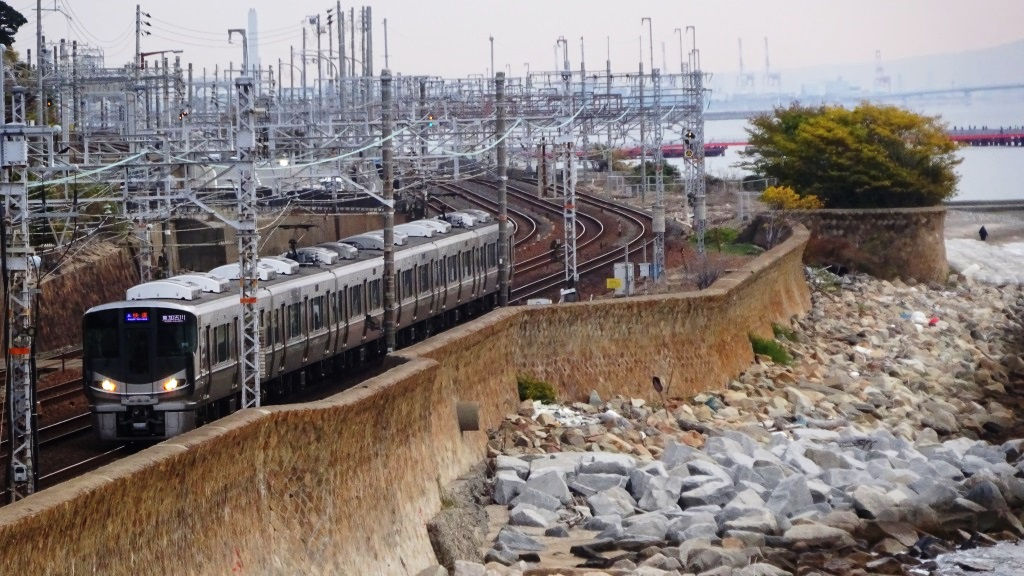 快速は新車(223系、225系)に統一され、さらに快適性が向上したJR神戸線区間。