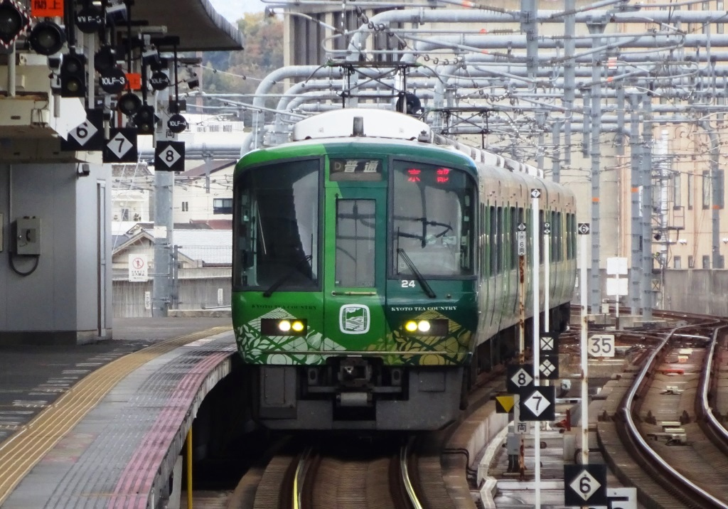 JR奈良線と併走する。本数などで圧倒的に有利に見えるが、JRは料金不要の快速が走り、大半が転換クロスシート車、複線化で本数も増えており、ジャパンレールパス利用の外国人も多く、侮れない存在になっている。