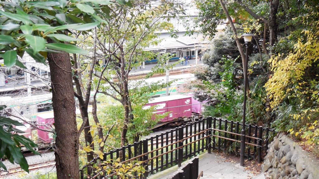 俯瞰撮影になり架線の処理が難しく、橋に金網がかかっているので、コンデジじゃないと撮影が難しいが、下り貨物線(湘南新宿ライン北行も通る)は金網をクリアできる。