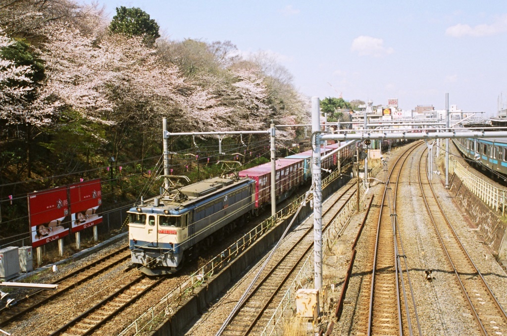 ここの良い所は、飛鳥山の桜や紅葉、あじさいをからめて季節感のある鉄道写真を気軽に取れること、また、貨物列車の本数が意外とあるので、非日常的な写真も撮れることだ。