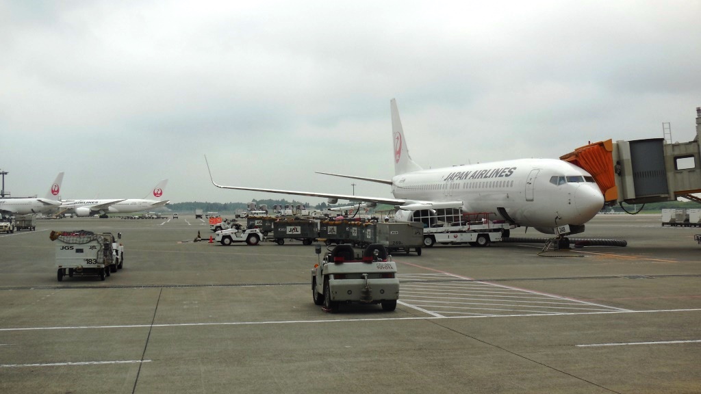 昔、成田で国内線に乗る際は、全て沖止めでバスアプローチだったが、今はボーディングブリッジで楽に乗れる(ただし、また階段を登る)。
