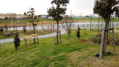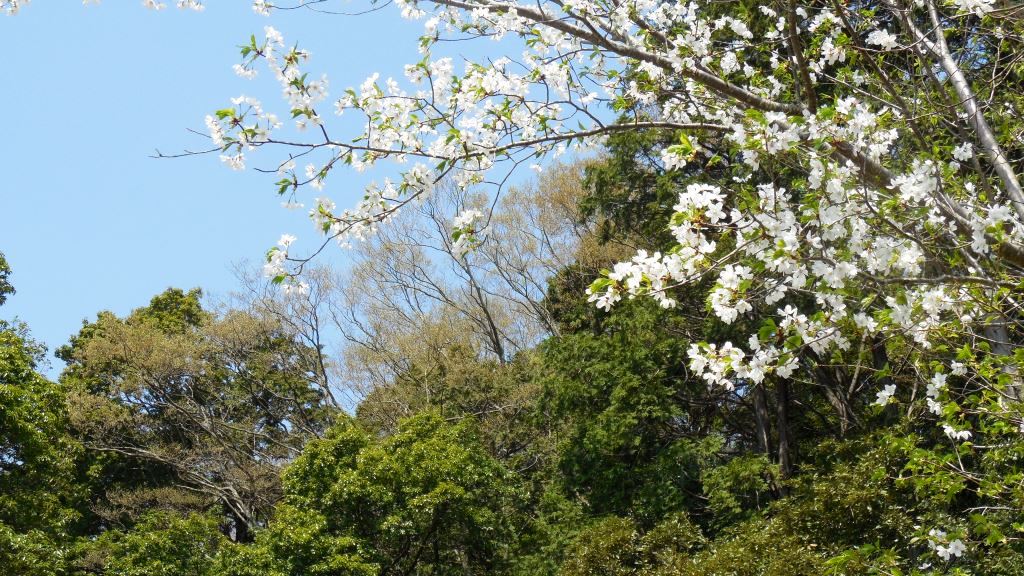 庭園は高台の上にあるが、JRや国道に面してる斜面も庭園の一部である(佐倉市が緑地として整備)。この斜面にも数本、ヤマザクラがある。