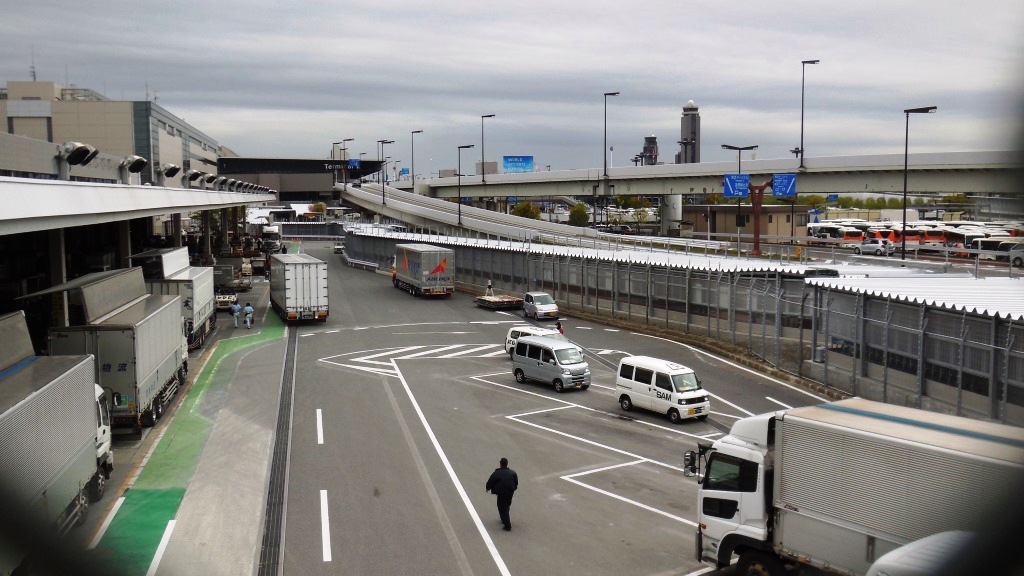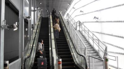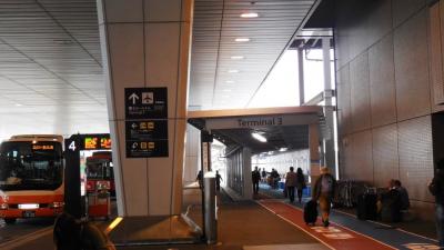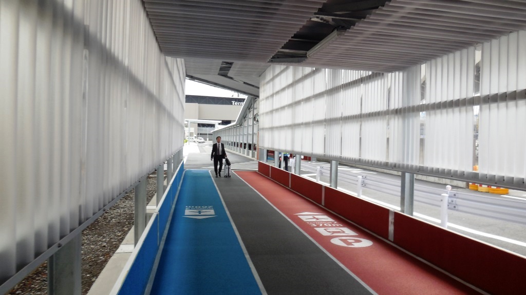 空港リムジンバスは、今回3タミ用のバス乗り場も新設されたが、今までの検問ゲートの横に急ごしらえの乗り場から、「階段(エスカレータ)」を登って、跨道橋で貨物ターミナルにいく道路を越えてからターミナルに入る。当然距離と高低差がある。