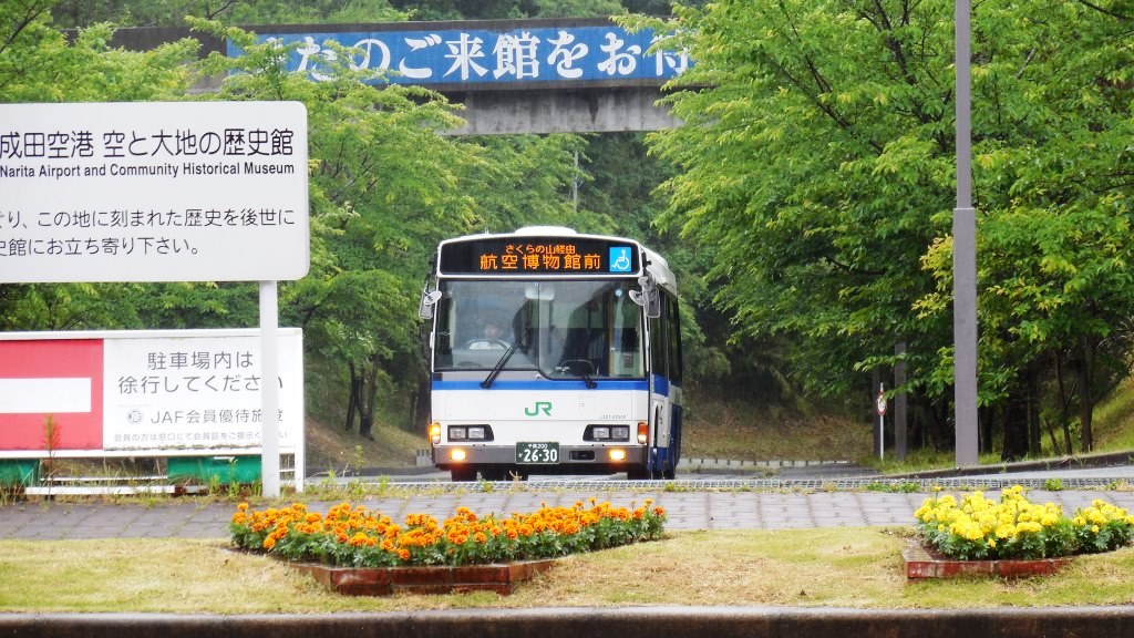 また、路線バスも整備され、JR成田駅発芝山方面のJRバスも博物館の玄関まで来るようになった(一部は5月に改正)、従来の成田駅発三里塚行が全て航空博物館まで延伸される形、これらは、空港の展望ポイントで有名な「さくらの山」も経由する便がある。