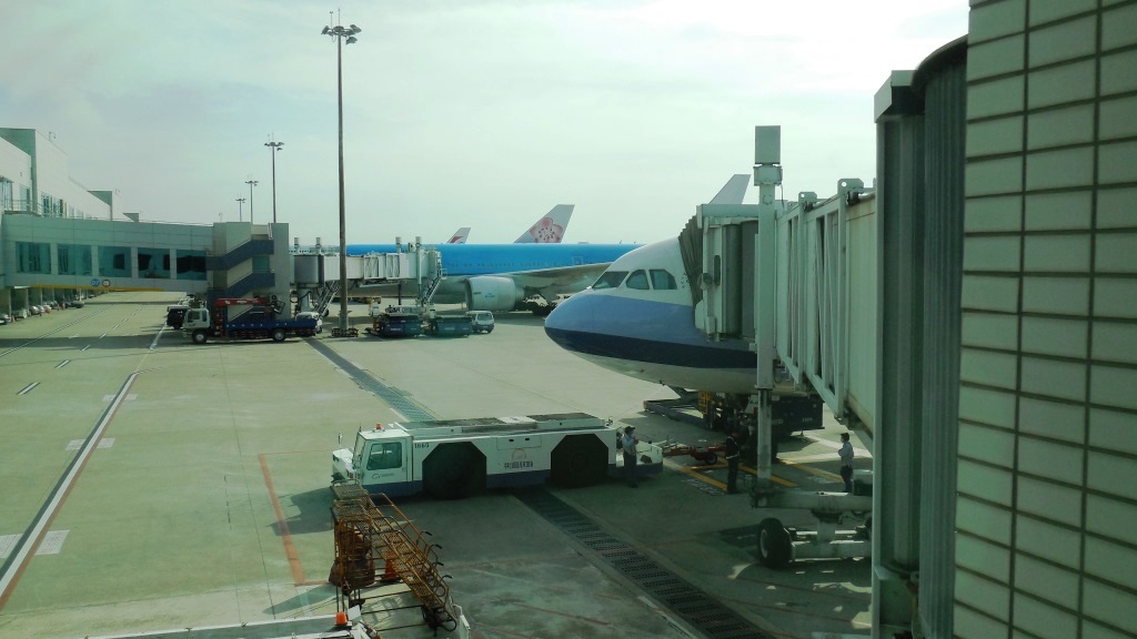3600mクラスの滑走路が2つのターミナルを挟み込むように(オープンパラレル)整備され、ターミナルは2つとも、滑走路に垂直に造られてると、スタイルは機能的に見える空港だが、2つのターミナルから枝のようにブリッジが伸び、ボーディングブリッジは滑走路に平行に漫然と延びる。なので、飛行機は乗り降りするターミナルに横付けするとは限らず、便によってはターミナルまでかなり歩く。今回、行きに中華航空で降りた時はターミナルの右端から左端まで結局歩いた。