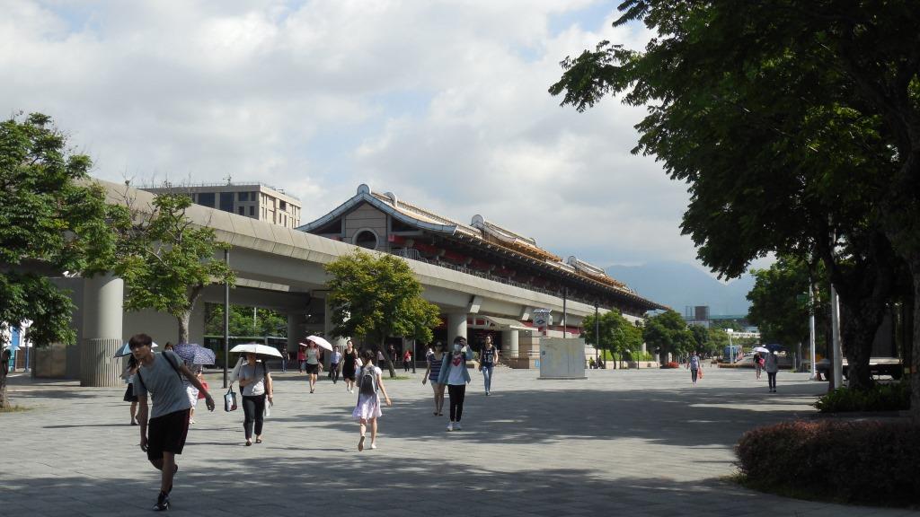 MRT淡水線、台北駅から4駅目、夜市の剣譚駅の隣。周囲は公園が広がり、頭上を松山空港に着陸する飛行機が低空飛行する。