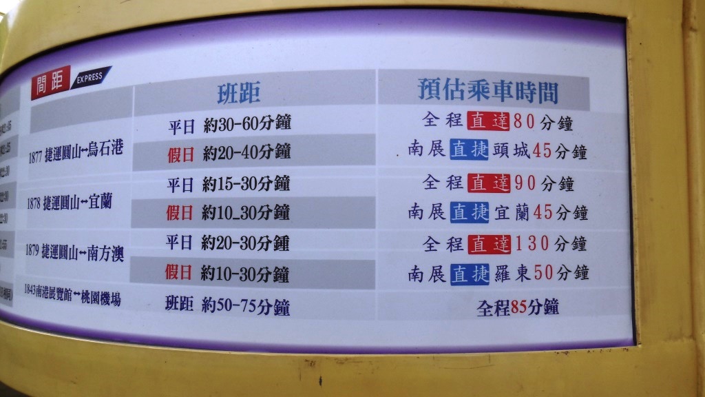 本数は宜蘭方面20分~30分毎、頭城行1時間毎など。MRT自体は朝3分間隔、日中5分間隔。- 旅行時期
