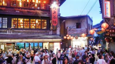 他の九份の飲食店もそうだが、ここのテラス席からの展望は絶景だ。遠く基隆の港まで見える。特に黄昏時が最高。