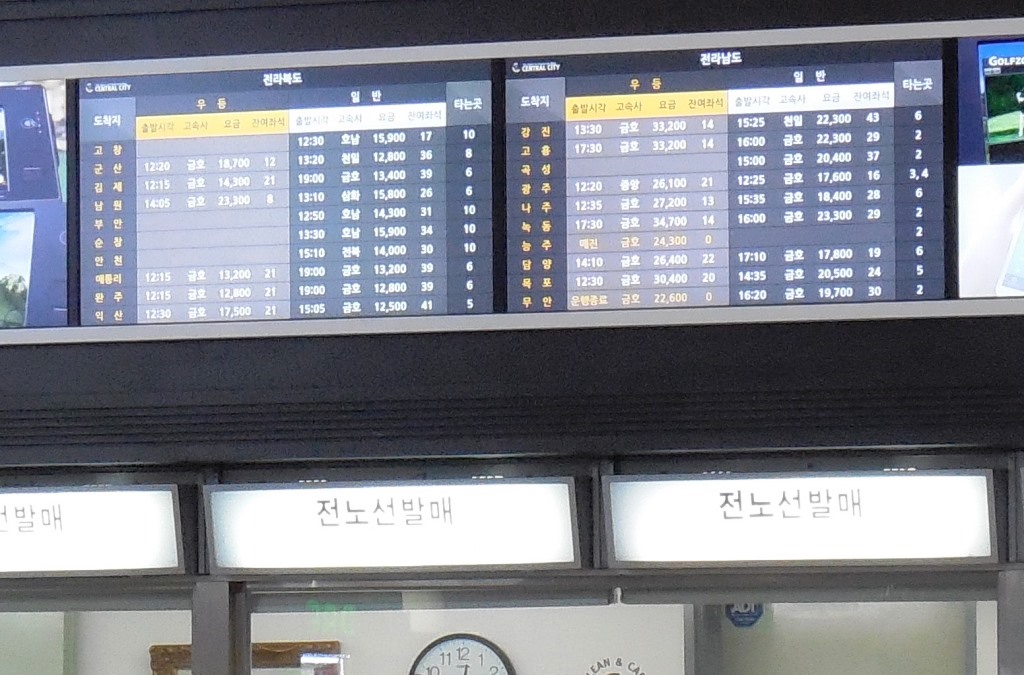 ソウルから全羅道へ行く場合、本数は列車よりバスの方が圧倒的に多い。バスに慣れれば国内移動がぐっと楽になる。