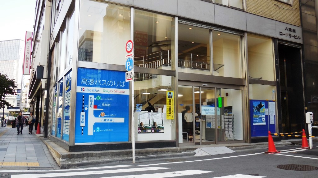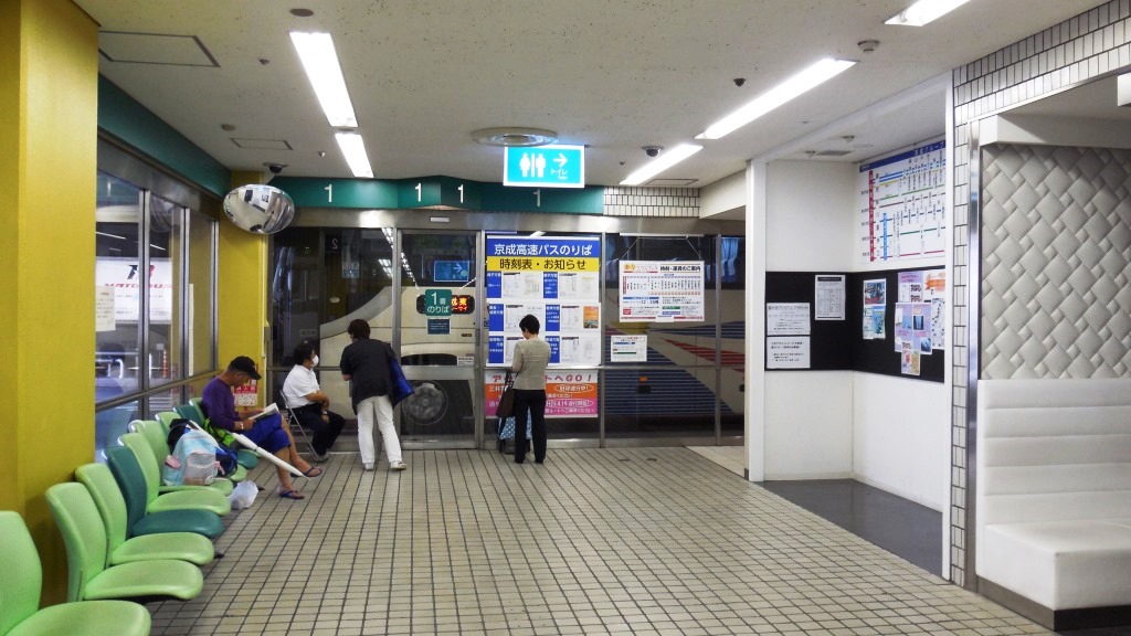7月に、ここに京成バスが、専用待合所を新設した。場所は、グランルーフから外堀通り、八重洲通りを渡った(大丸の向かい)ところ、八重洲ロータリービルの1階と2階。銚子、東金行高速バスとTheアクセス成田が出発する京成1番乗り場に近い。八重洲地下街18番出口を上がると目の前。やや距離があるが3番乗り場(マイタウンダイレクトバスや東京シャトルが出発)へも、道沿いに行ける。