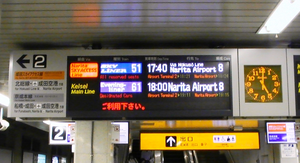 乗車しているとよく目にするのは、日暮里駅などで案内を確認せず、途中駅どまり(臼井行が多い)に乗ってしまい、終点駅(臼井駅など)で途方に暮れている外国人、特急に乗っても、空港の手前にある京成成田駅を、空港と勘違いして降りてしまう外国人で、やはりアジア系に多い。京成は案内のユニバーサルデザイン化をかなり進め、4か国語表示や英語放送など、案内は充実しているのだが。- 旅行時期